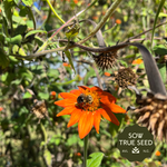 These vibrant, tall beauties will attract all kinds of pollinators to your garden! The orange-red daisy-like flowers with a yellow center are beloved by swallowtail butterflies, hummingbirds, various small and medium sized butterflies, bees, and a variety of songbirds. Tithonia rotundifolia is hardy and easy to grow, especially in poorer and dry soils, and makes a beautiful 4-5’ tall backdrop to any garden. Its long-lasting blooms from summer to fall make this flower a fast favorite in gardens. Deadhead spent blooms and cut or pinch back stems often for a longer bloom time and fuller, sturdier plant. Mexican Sunflowers make a fantastic cut flower and are deer and drought resistant. Tithonia seeds are easy to save and grow year after year in your garden. Typically grown for flowers. Annual.