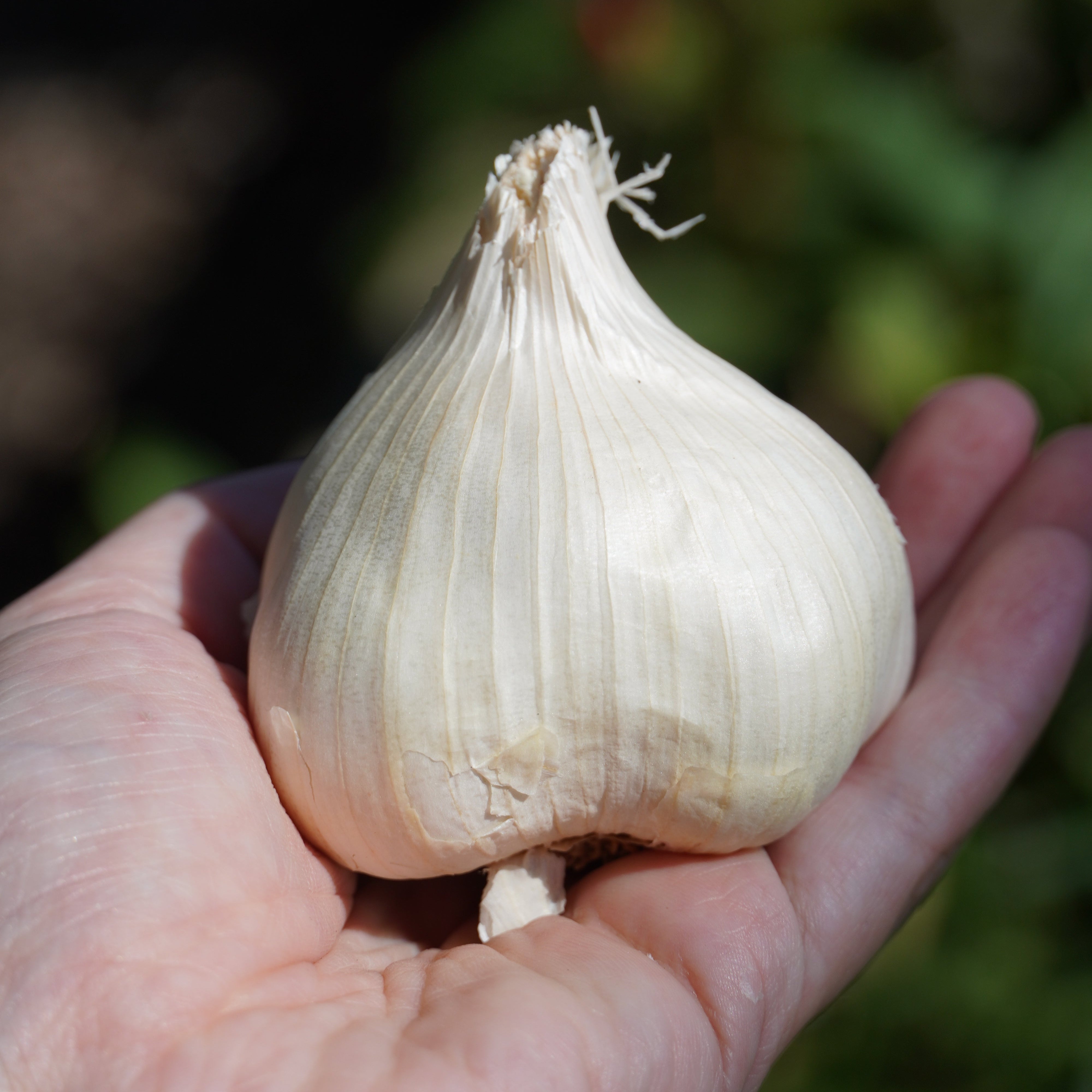 ARTICHOKE TYPE - This medium-heat, full-flavored softneck variety, also known as Polish White, produces high yields of large bulbs with a few huge cloves and fewer tiny interior cloves than most softnecks. Its smooth white skin with a little purple blushing make for a beautiful garlic braid. Bulbs can easily last six months in cool, dry storage.