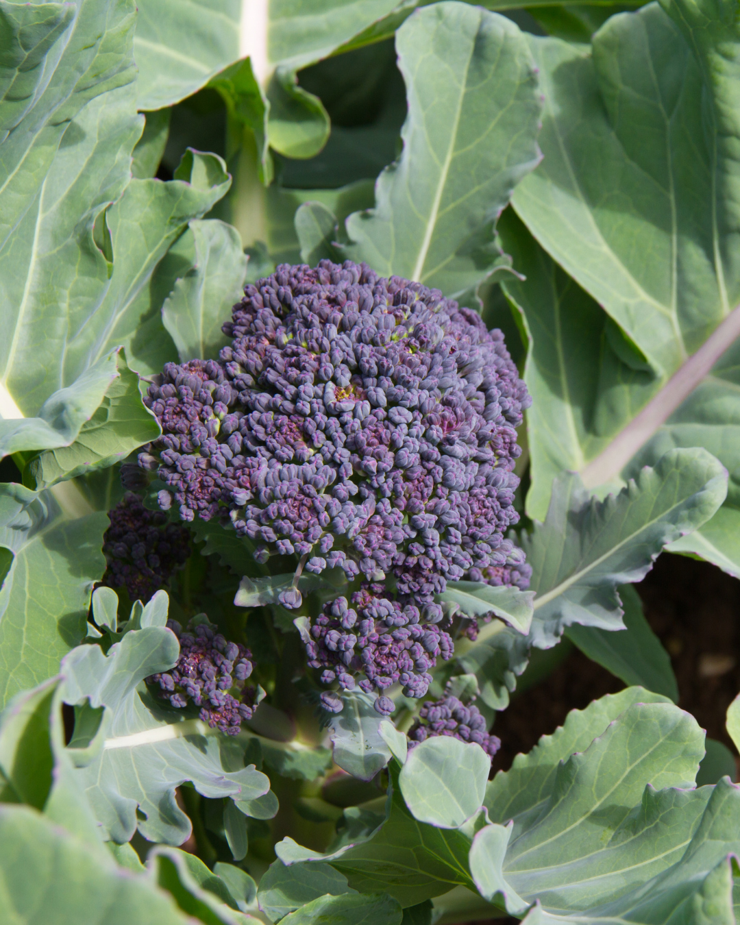 When transplanting, ideally your seedlings will be four inches in height. Plant your seedlings out 18 to 24 inches apart in rows 36 inches apart. Applying mulch after planting can help keep weeds in check and hold in moisture. The shallow roots of broccoli can be easily disturbed by weeding, so it’s best to avoid weeds in the first place! Ensure your seedlings get at least one inch of water per week. As the head starts to form, begin watering from below to avoid mold forming on the crown. Fertilize your broccoli with a high nitrogen fertilizer about one month after transplanting.