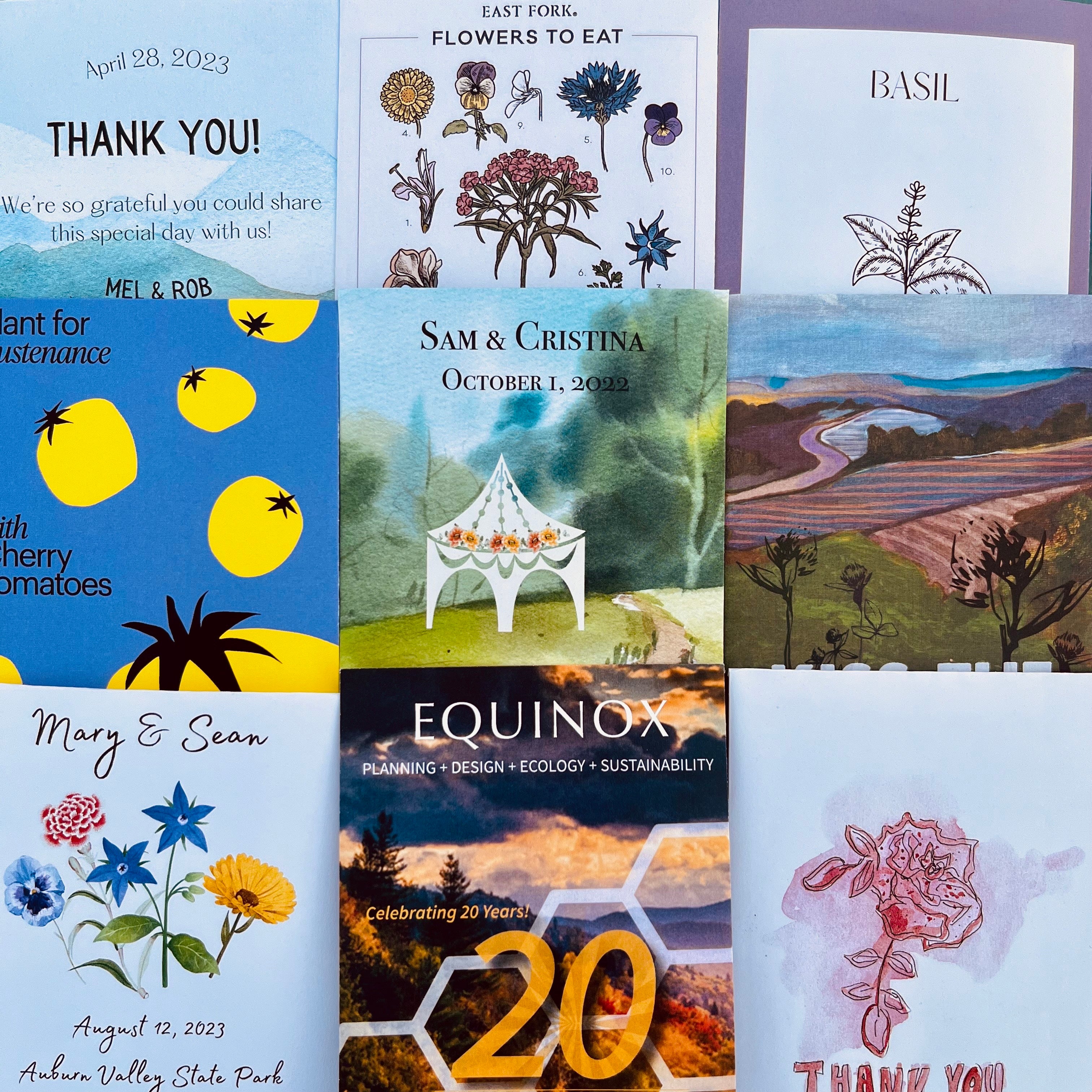 Custom seed packets are an environmentally-friendly gift that will lend a thoughtful touch to your wedding, event, announcement, baby shower, or any special occasion you can dream up!