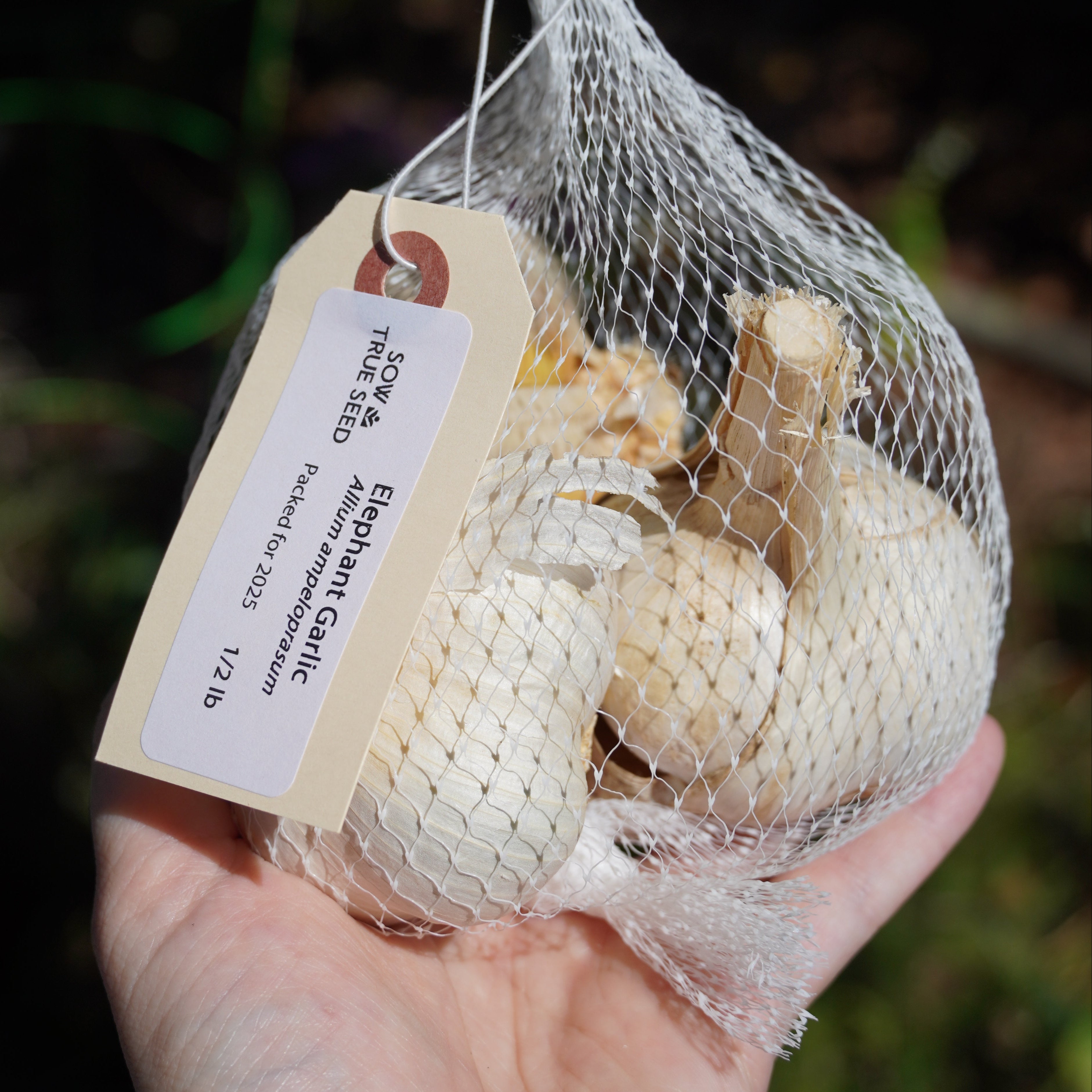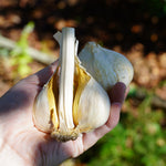 Elephant garlic is really a type of bulbing leek instead of true garlic, but is grown and harvested in nearly the same way as true garlic. It produces huge, softball-sized bulbs with a flavor so mild that they can be eaten raw. These truly impressive plants reach 4-5 feet tall.